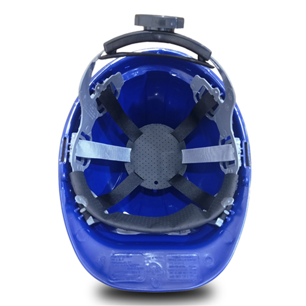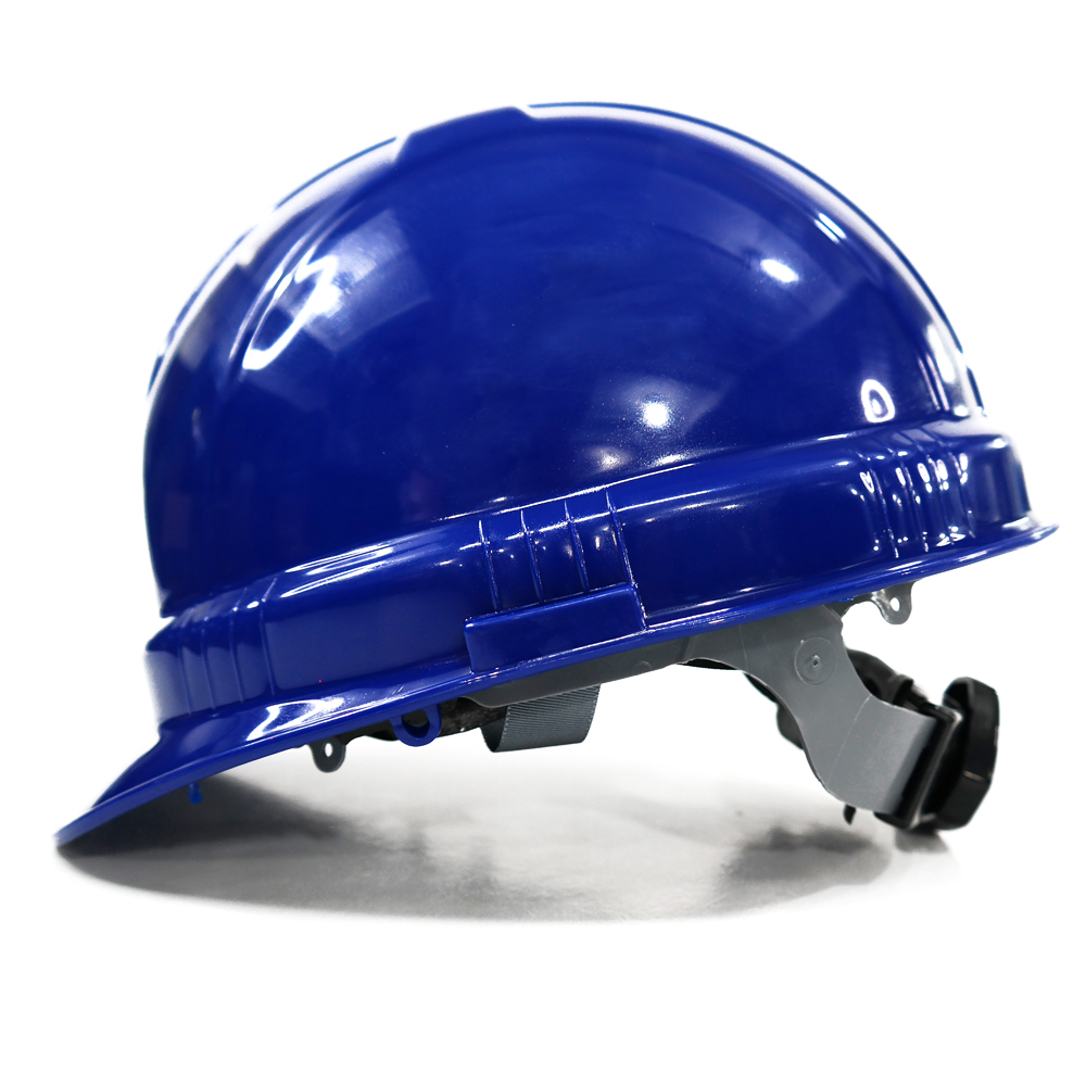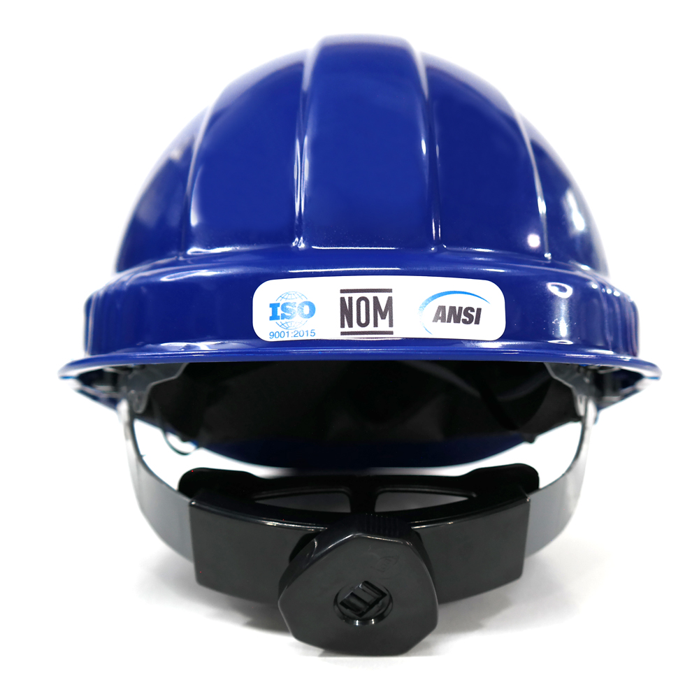 Casco de seguridad industrial fabricado en polietileno de alta densidad con canal en el borde para derivación de lluvia, Tafilete fabricado en polietileno de alta densidad.